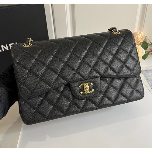 Chanel Jumbo Classic Flap Bag in Black Caviar Leather with golden hardware