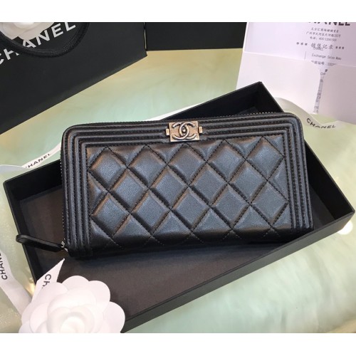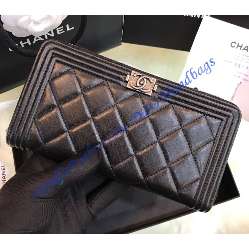 Chanel Boy Long Zipper Wallet in Lambskin CW80288-B-black