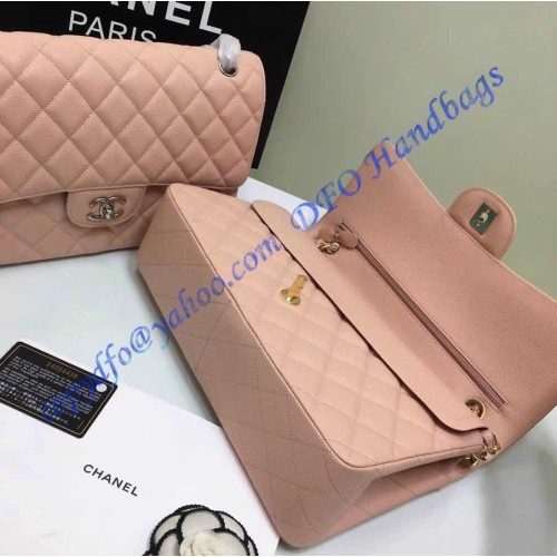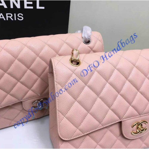 Chanel Jumbo Classic Flap Bag in Pink Caviar Leather with golden hardware