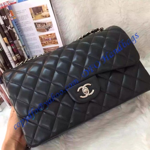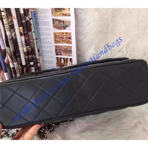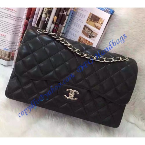 Chanel Jumbo Classic Flap Bag in Black Lambskin with silver hardware