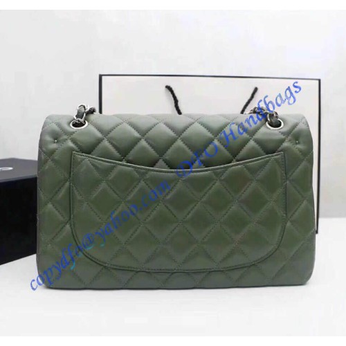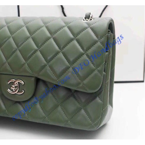 Chanel Jumbo Classic Flap Bag in Green Lambskin with silver hardware