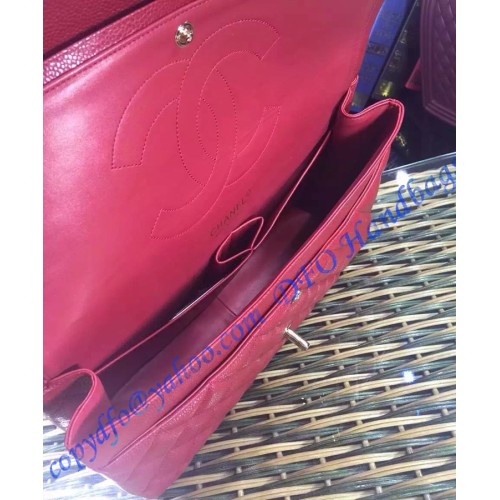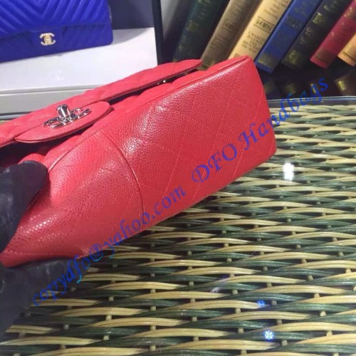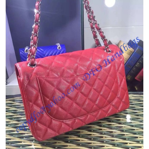 Chanel Jumbo Classic Flap Bag in Red Caviar Leather with silver hardware