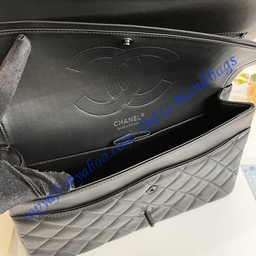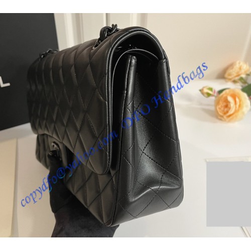 Chanel Jumbo Classic Flap Bag in Black Lambskin with black hardware