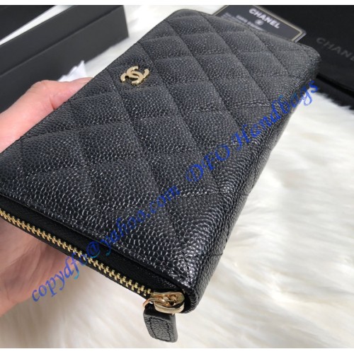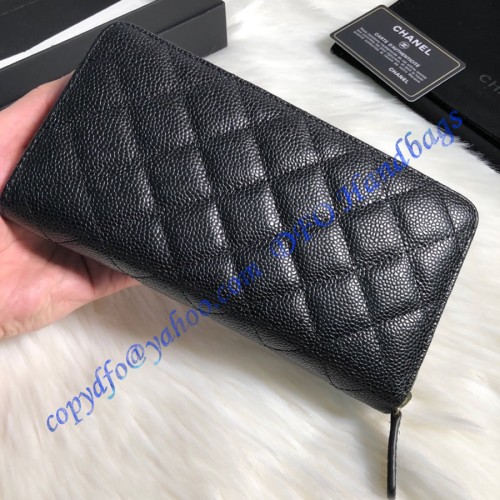 Chanel Long Zipped Wallet in Caviar Leather CW50097-AB-black