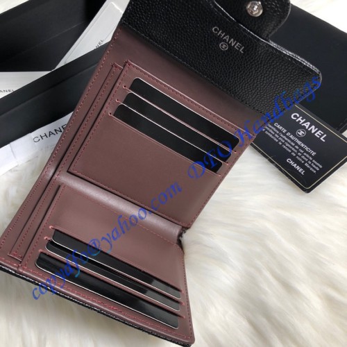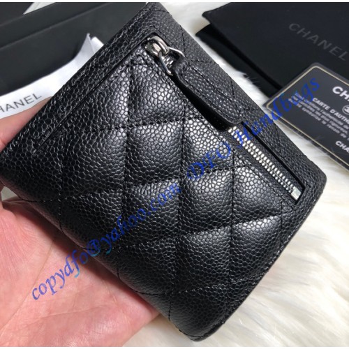Chanel Quilted Tri-Fold Wallet in Caviar Leather CW82288-BB-black