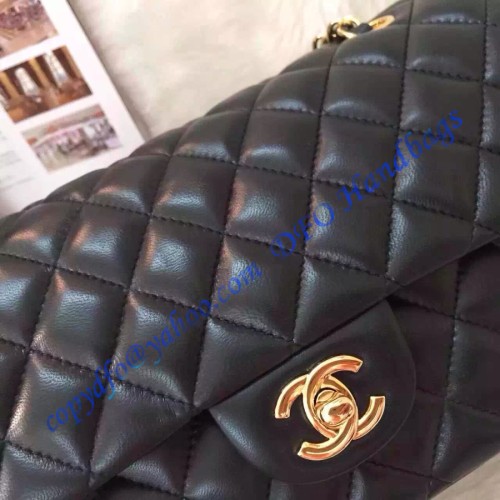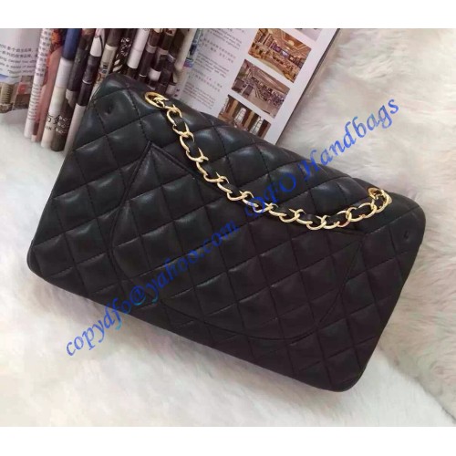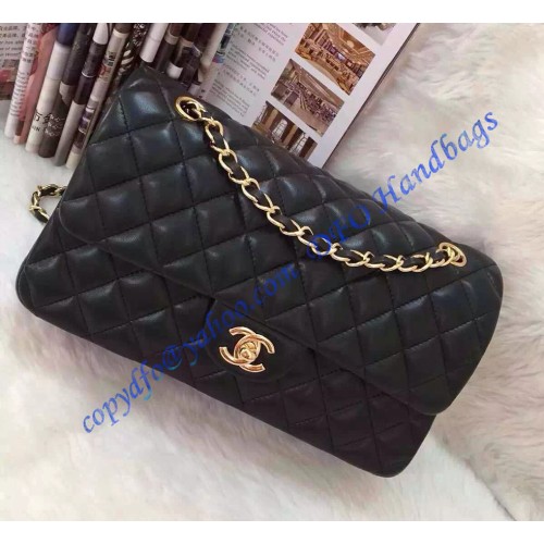 Chanel Small Classic Flap Bag in Black Lambskin with golden hardware