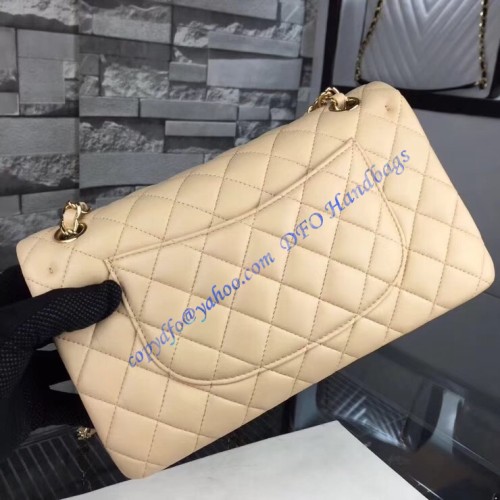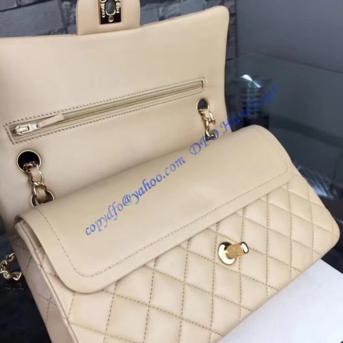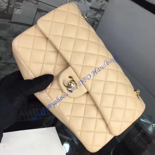 Chanel Small Classic Flap Bag in Tan Lambskin with golden hardware
