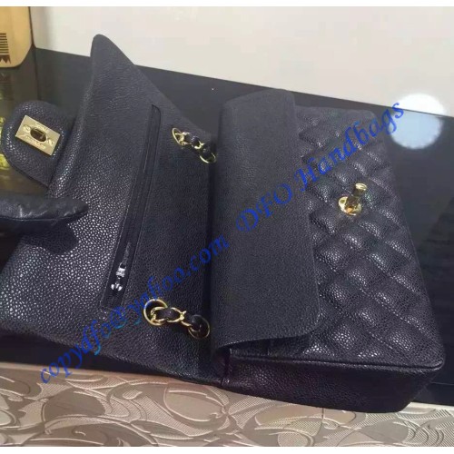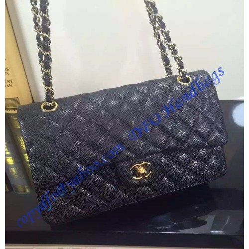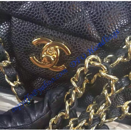 Chanel Small Classic Flap Bag in Black Caviar Leather with golden hardware
