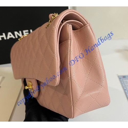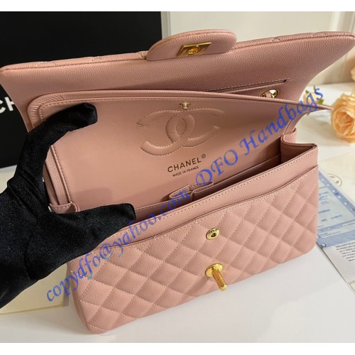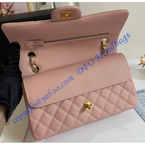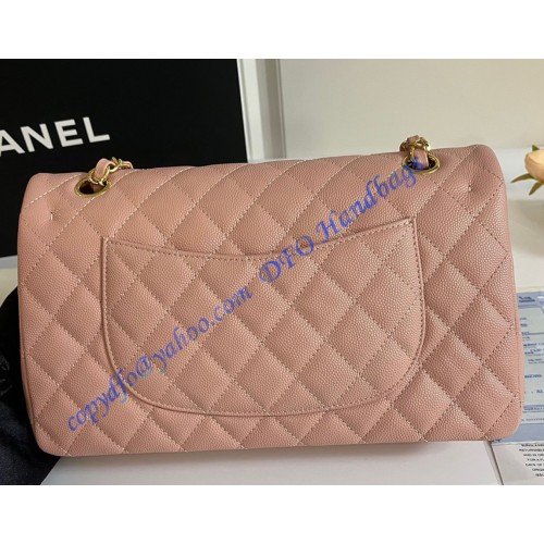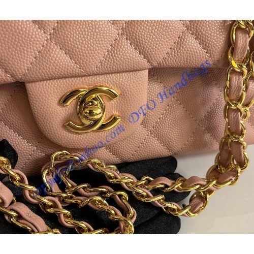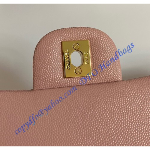 Chanel Small Classic Flap Bag in Pink Caviar Leather with golden hardware