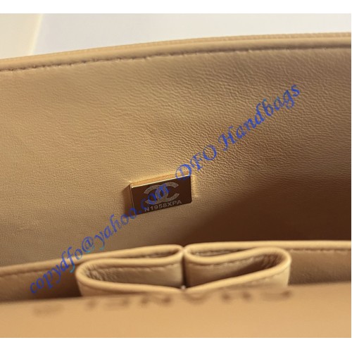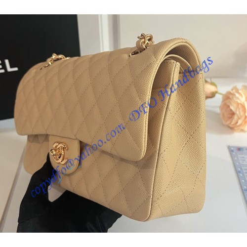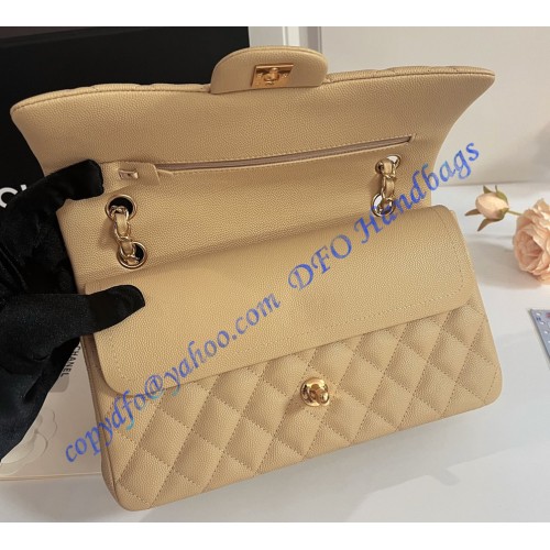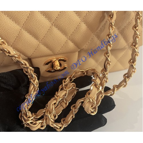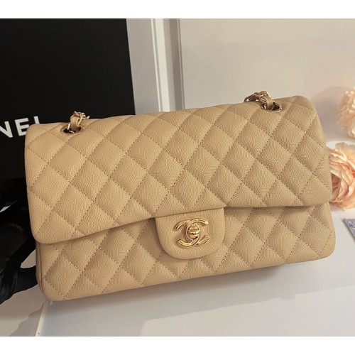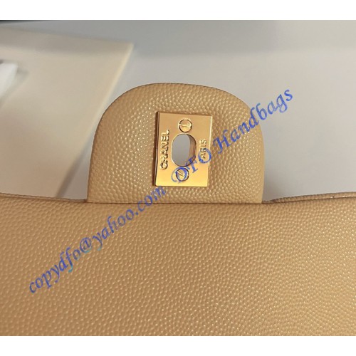 Chanel Small Classic Flap Bag in Tan Caviar Leather with golden hardware
