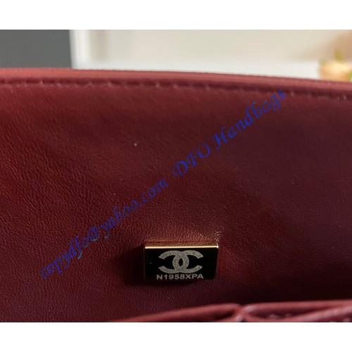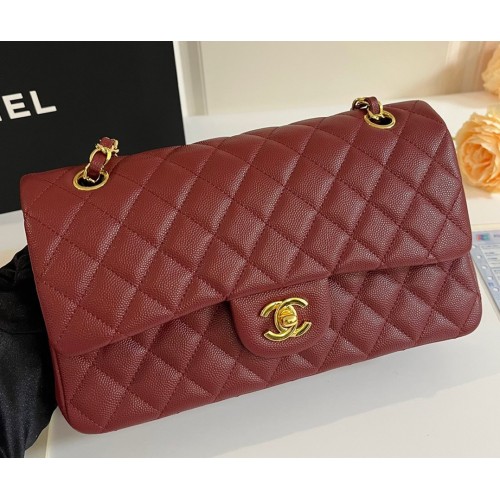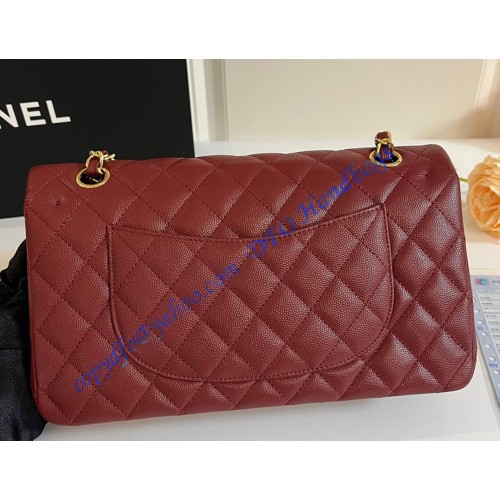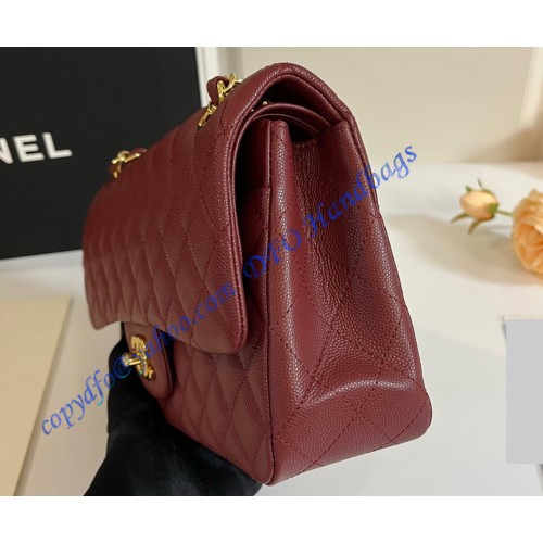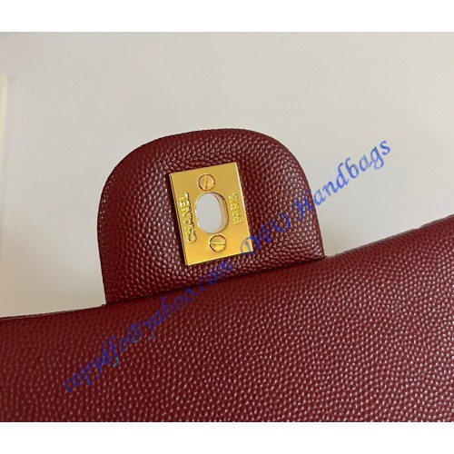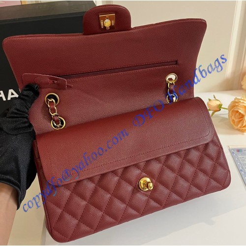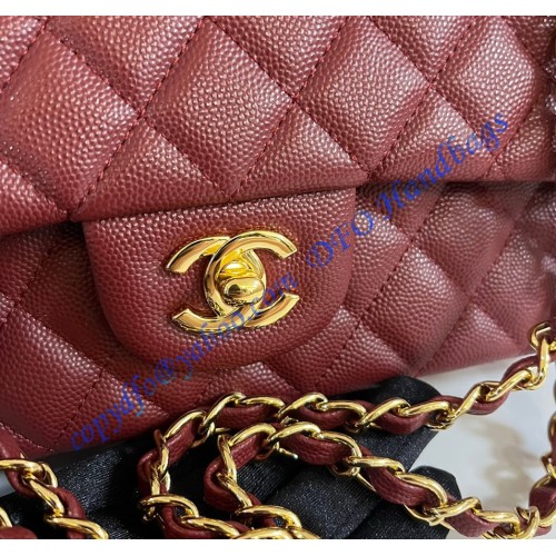 Chanel Small Classic Flap Bag in Wine Red Caviar Leather with golden hardware
