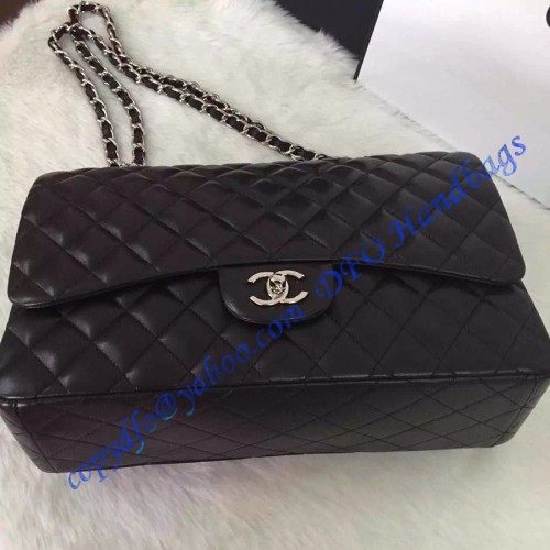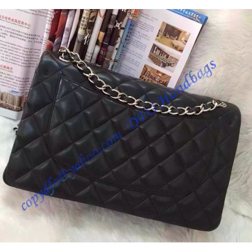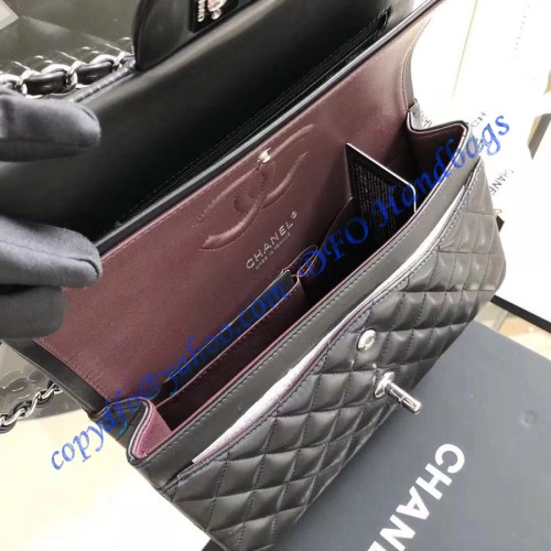 Chanel Small Classic Flap Bag in Black Lambskin with silver hardware