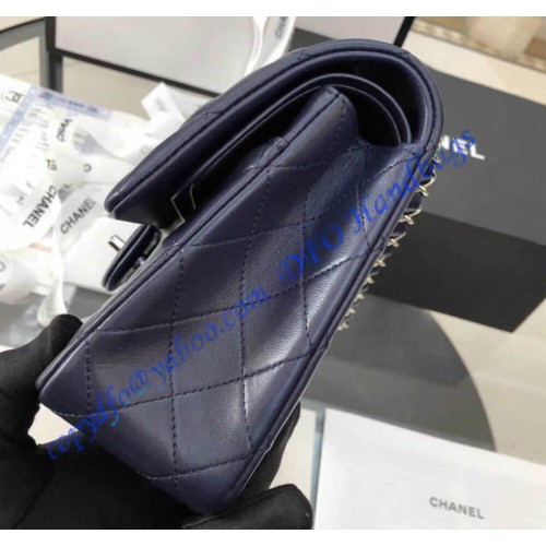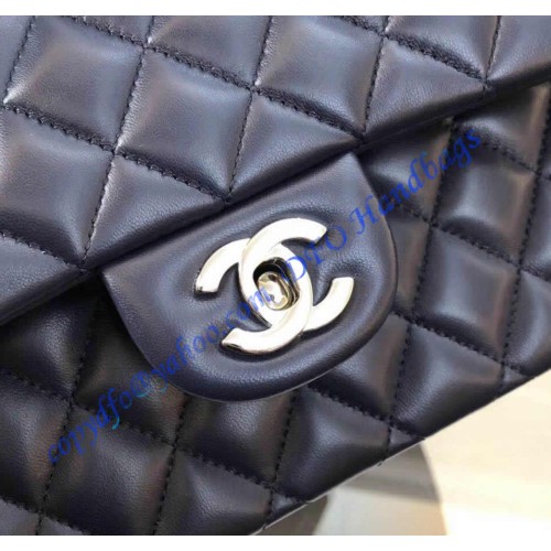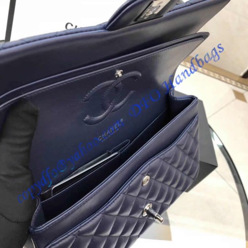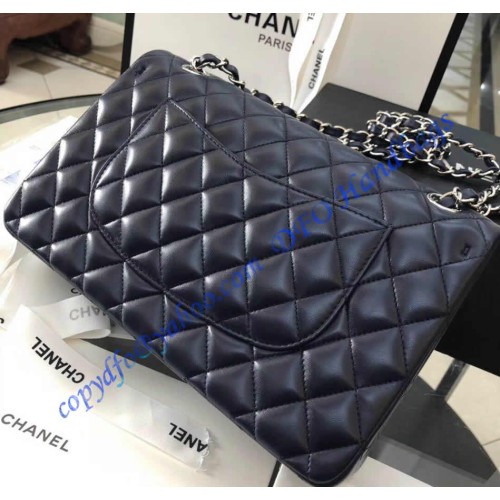 Chanel Small Classic Flap Bag in Dark Blue Lambskin with silver hardware