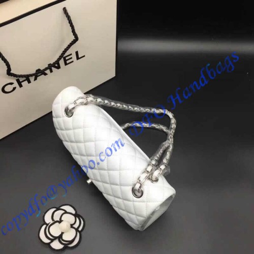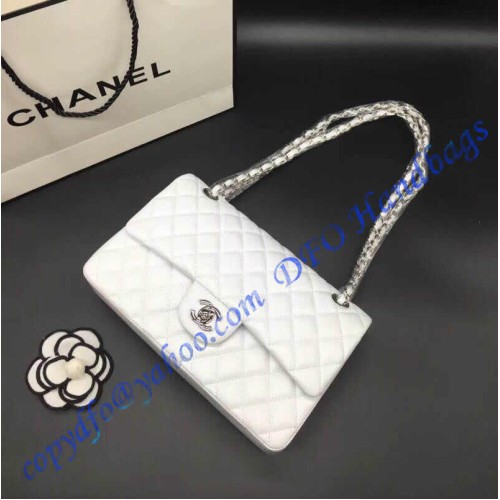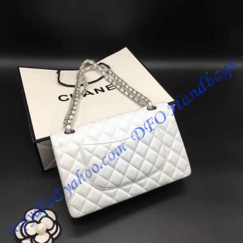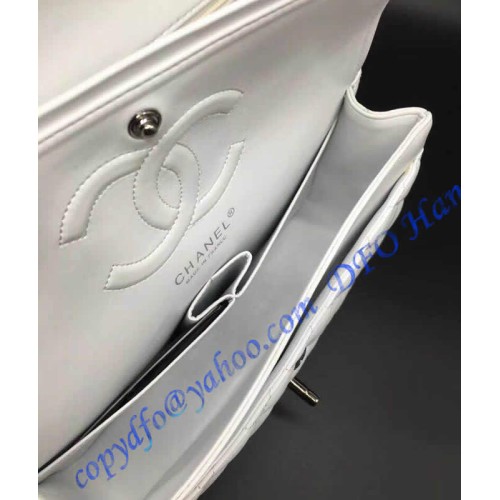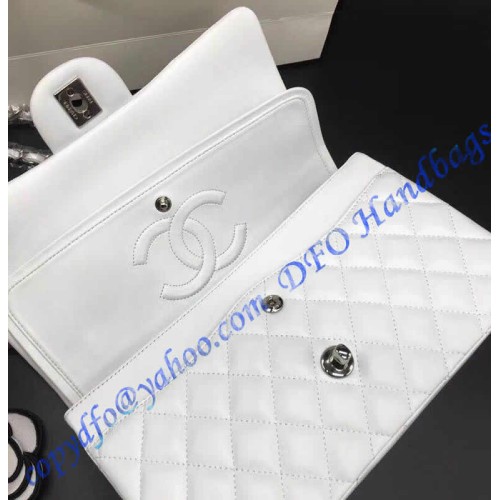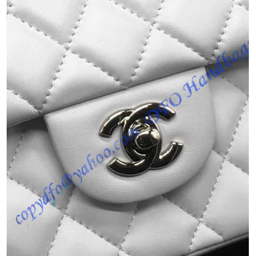 Chanel Small Classic Flap Bag in White Lambskin with silver hardware