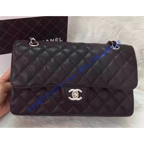 Chanel Small Classic Flap Bag in Black Caviar Leather with silver hardware