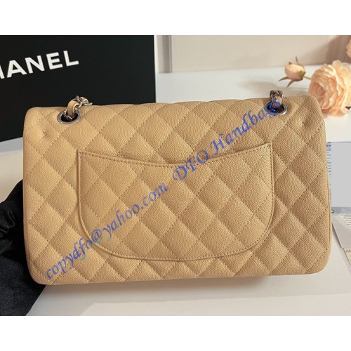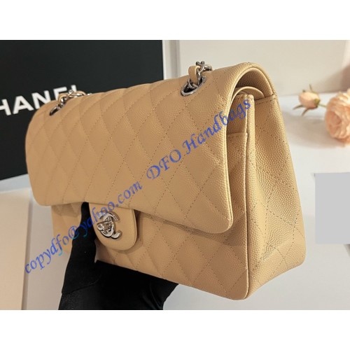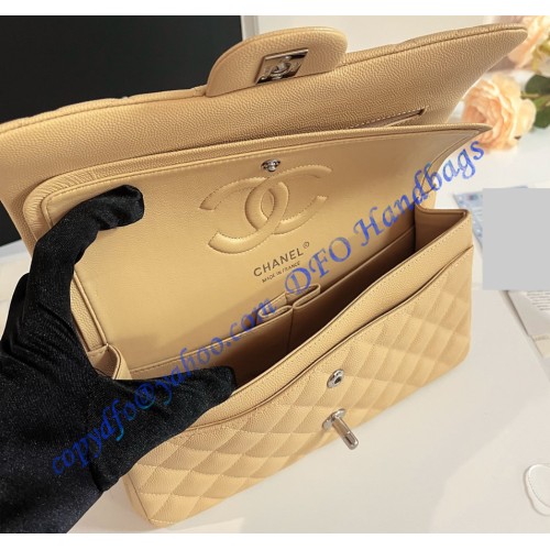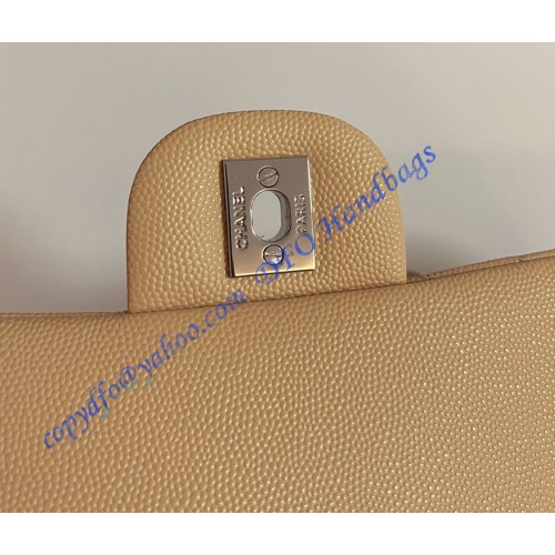 Chanel Small Classic Flap Bag in Tan Caviar Leather with silver hardware