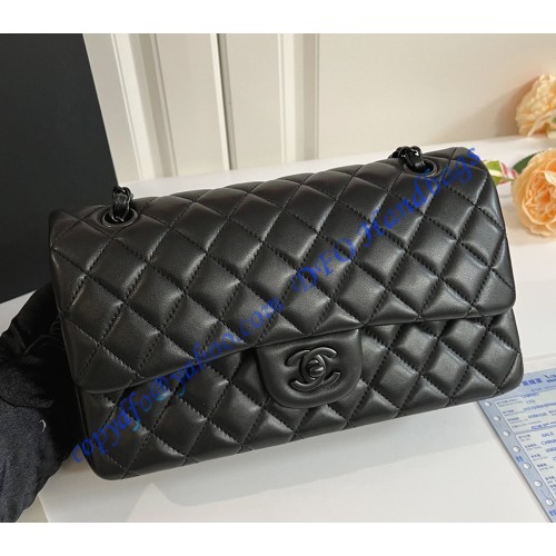 Chanel Small Classic Flap Bag in Black Lambskin with black hardware