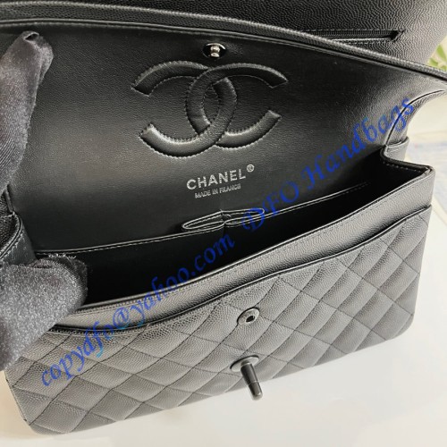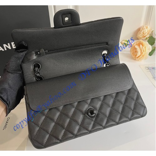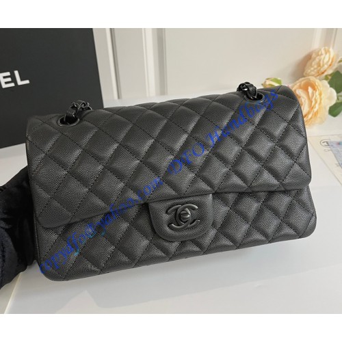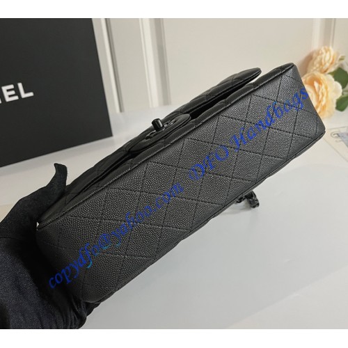Chanel Small Classic Flap Bag in Black Caviar Leather with black hardware C1112CB-black