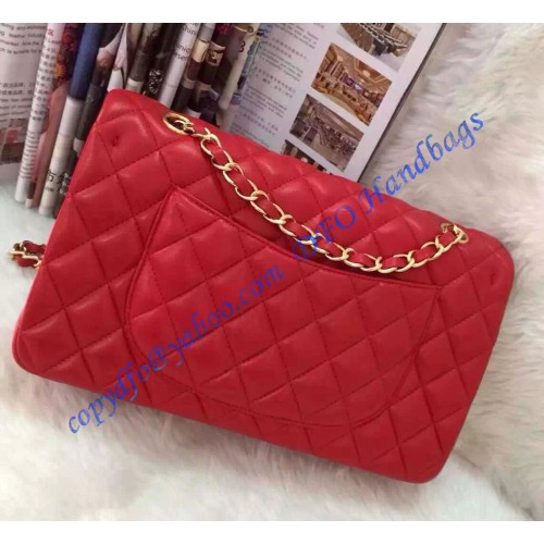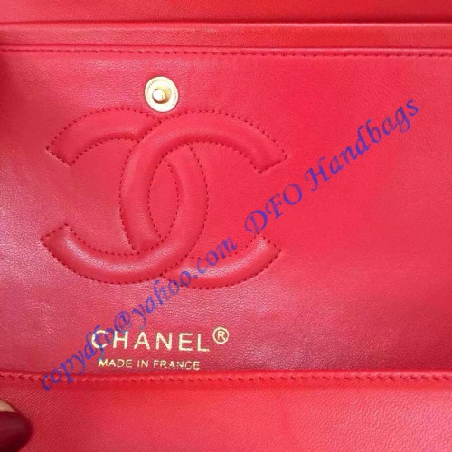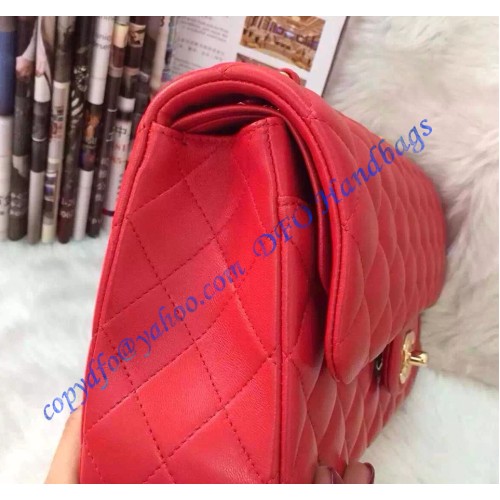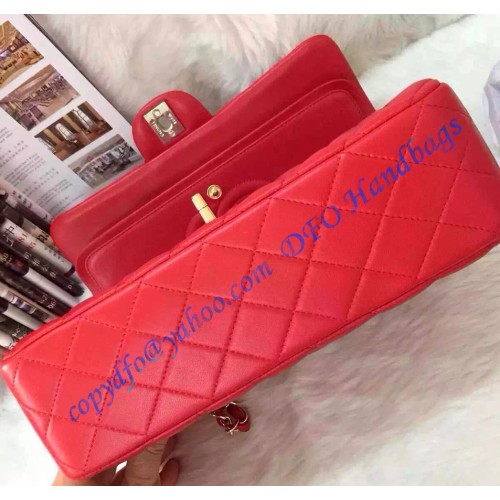 Chanel Small Classic Flap Bag in Red Lambskin with golden hardware