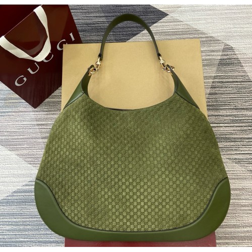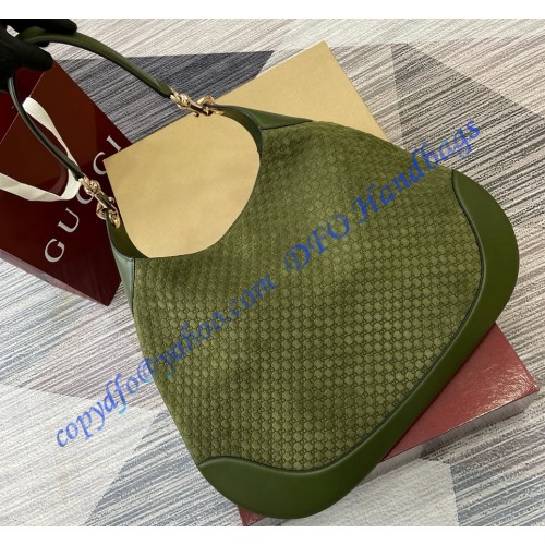 • Green micro GG embossed suede