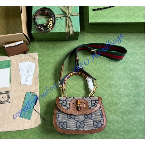 Gucci Bamboo 1947 Jumbo GG Small Top Handle Bag GU675797C-blue-brown