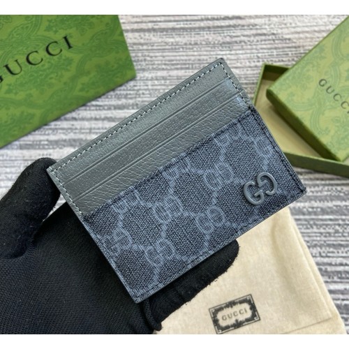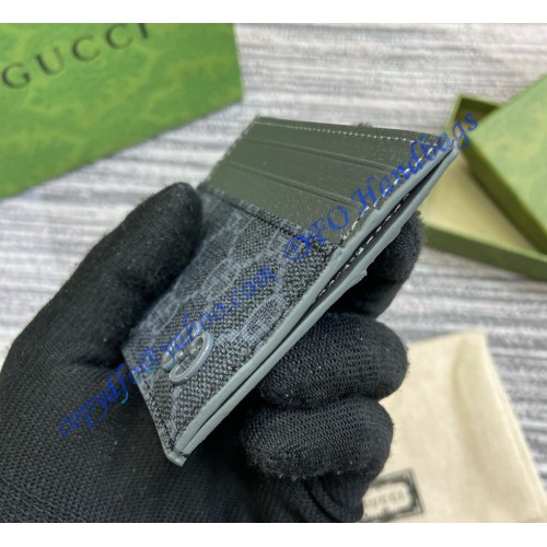Slim and compact small leather goods from the latest collections highlight new colorful shades sporting the GG logo with a bicolor design. This card case with six slots appears in a black GG Supreme canvas, complete with a smooth leather trim.