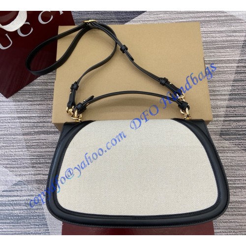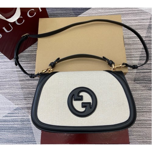 The new Gucci Blondie bag, whose distinctive logo first appeared in the House’s collections in the early 1970s, weaves together past and present in a fusion of nostalgia and modernity. This medium top handle bag with a detachable and adjustable leather shoulder strap is crafted from natural canvas.