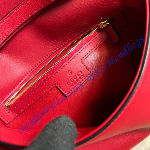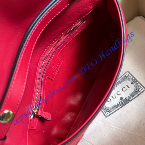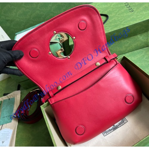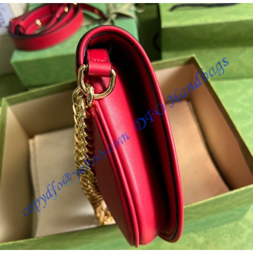Coming from the House's archives, a round shaped version of the Interlocking G logo is reintroduced for Gucci Love Parade. Crafted from red leather, this shoulder bag is completed by a delicate chain strap, infusing this accessory with a refined feel.