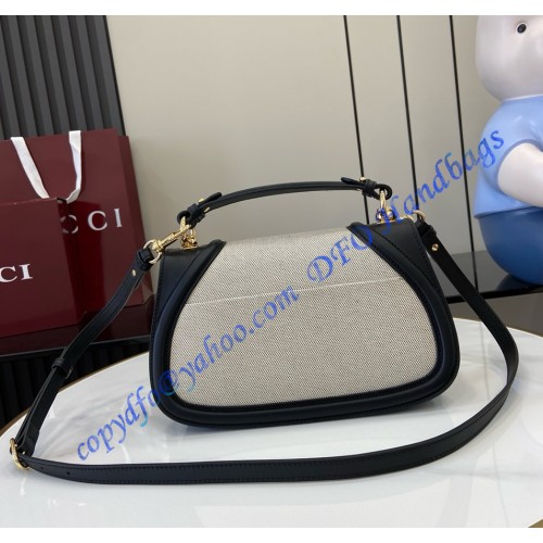 The new Gucci Blondie bag, whose distinctive logo first appeared in the House’s collections in the early 1970s, weaves together past and present in a fusion of nostalgia and modernity. Presented in fresh cotton linen canvas and smooth leather trim, this small bag is complete with a top handle and adjustable shoulder strap.
