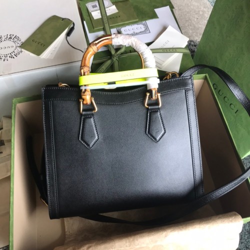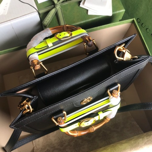 The concept of reinvention continues to shape the House's designs. An evolution of a bamboo handle tote first introduced in 1991, the Gucci Diana represents the notion of style in constant evolution. The design plays with traditional details and renews them new meaning. Playing with this idea, the functional bands used to keep bamboo handles in shape are reimagined as playful leather belts.