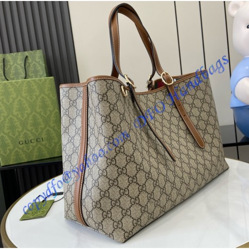 The new GG Emblem collection reinterprets the House’s history of elegance and craftsmanship. This tote bag features numbered notches on the adjustable top handles, inspired by the equestrian world.