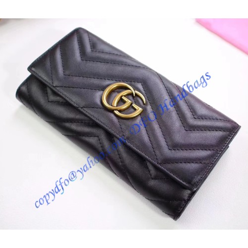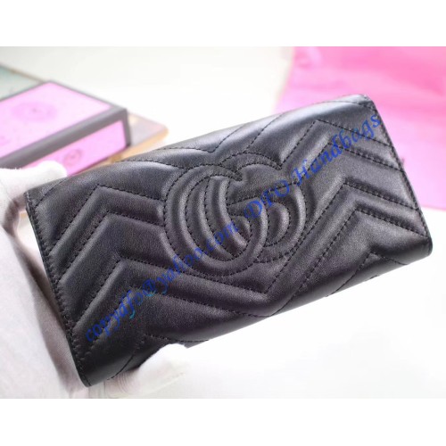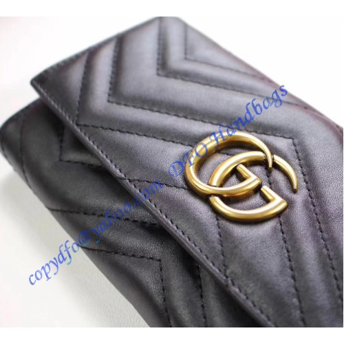 Gucci GG Marmont continental wallet in Black leather with a chevron design