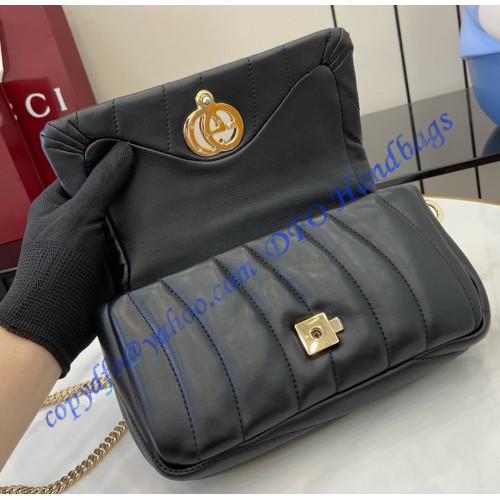 The GG Milano top handle bag by Creative Director Sabato De Sarno debuted at the Fall Winter 2024 fashion show during Milan Fashion Week, paying tribute to the city which inspired the design. It features a new Double G hardware, and the puffy leather has a soft and silky quilted pattern. The chain strap allows the bag to be worn crossybody or on the shoulder.