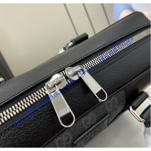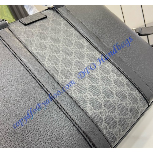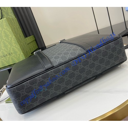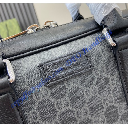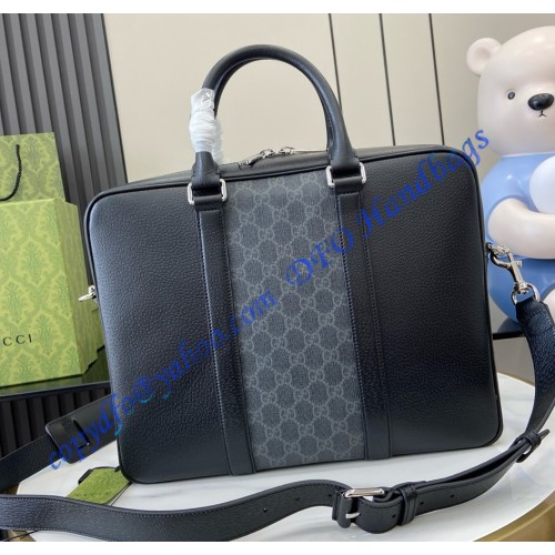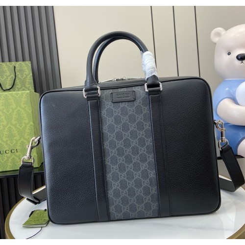 A selection of bags, including mini cross-body bags, briefcases and totes have been reshaped with functional details. Crafted from black leather and GG Supreme canvas, this briefcase features a laptop compartment and adjustable shoulder strap. A Gucci Made in Italy leather tag completes the design as an elegant logo touch.