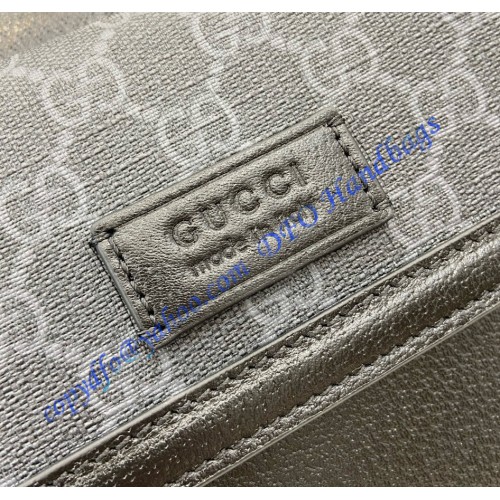 A selection of bags, including mini cross-body bags, briefcases and totes have been reshaped with functional details. Crafted from black leather and GG Supreme canvas, this crossbody bag features an inside pocket and adjustable shoulder strap. A Gucci Made in Italy leather tag completes the design as an elegant logo touch.
