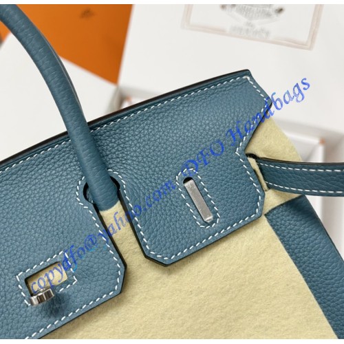 Hermes Birkin 30cm Togo Leather Palladium Hardware H8830W-bleu-jean