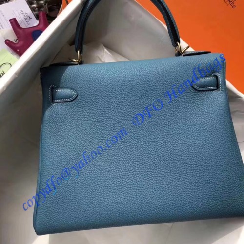 Hermes Kelly 28cm in Togo Leather Golden Hardware H5528G-bleu-jean