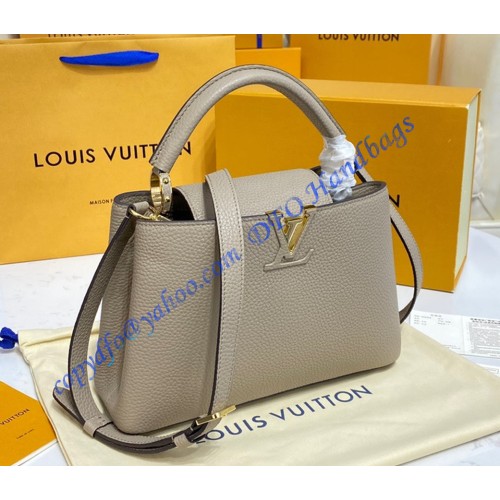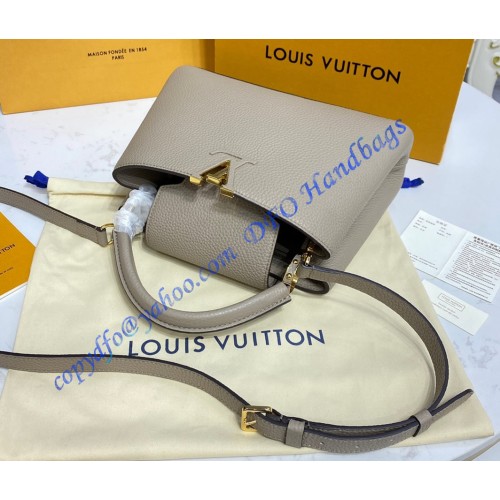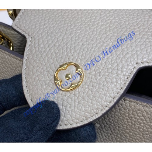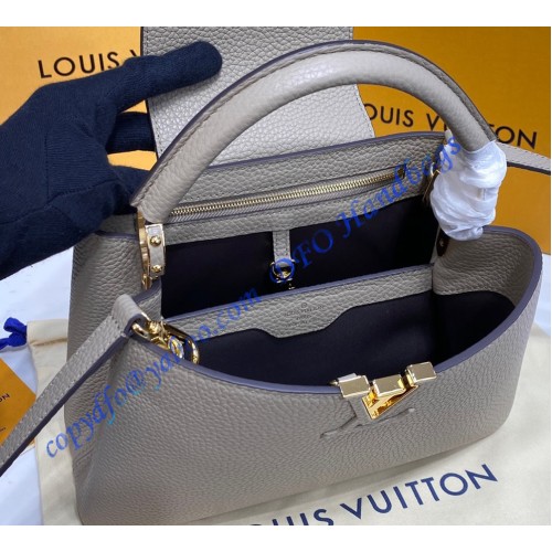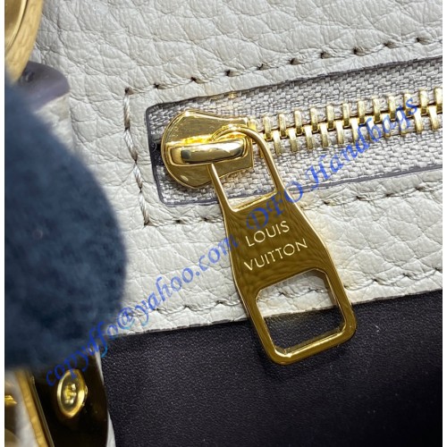 Fashioned from full-grain Taurillon leather, the now-classic Capucines BB handbag displays a host of House signatures: leather-wrapped LV Initials, jewel-like handle mounts inspired by historic trunks, and a distinctive flap with a Monogram Flower motif. Timelessly elegant, this charming model can be carried by hand or worn cross-body on its detachable strap. First launched in 2013, the Capucines is named for the Parisian street where Louis Vuitton first opened shop, in 1854.