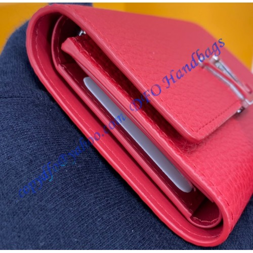 Crafted in supple Taurillon leather, the Capucines Compact Wallet has many functionalities and a large capacity to fit every day essentials. The ingenious and original structure of this elegant pocket-sized wallet made of 2 fold-over flaps gives you ample space for credit cards, coins and bills.