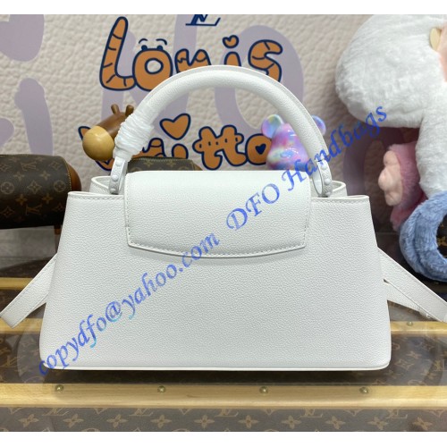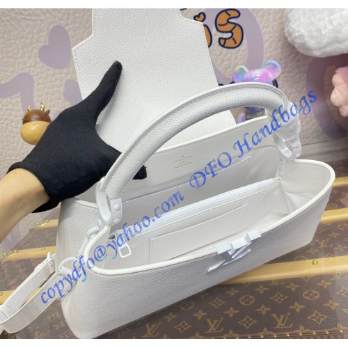With its stylish new east-west silhouette, the Capucines MM handbag brings a fresh perspective to a House icon. Crafted from luxurious matte Taurillon leather and embellished with matte hardware, this capacious model easily accommodates two smartphones, a long wallet and other daily essentials. The detachable leather strap is adjustable too, for extra styling versatility.