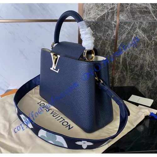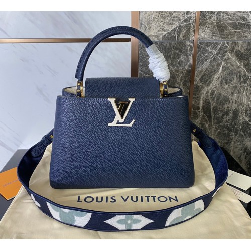 Flower Power comes to the Capucines MM handbag with an embroidered strap featuring oversize Monogram Flowers. The graphic motif - it takes twenty thousand embroidery stitches to create the floral pattern - works well with the classic colorblock of the bag’s Taurillon leather. The strap can be removed to give the bag a more neutral aspect.