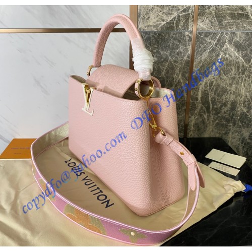 Flower Power comes to the Capucines MM handbag with an embroidered strap featuring oversize Monogram Flowers. The graphic motif - it takes twenty thousand embroidery stitches to create the floral pattern - works well with the classic colorblock of the bag’s Taurillon leather. The strap can be removed to give the bag a more neutral aspect.