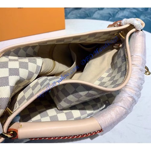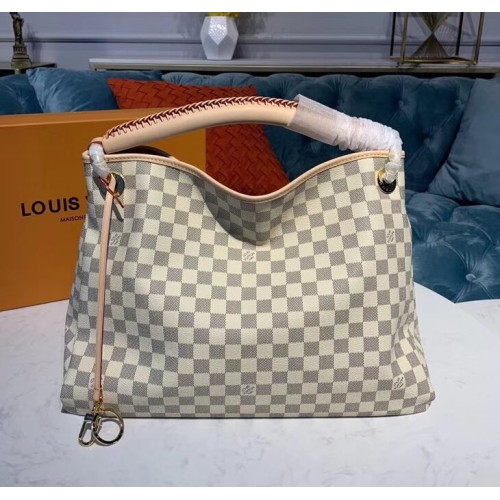 The Artsy MM looks fresh and feminine in supple Damier Azur canvas. Adorned with shiny golden brass and a chic bag charm, its exquisite handcrafted leather handle adds a luxurious crowning touch.