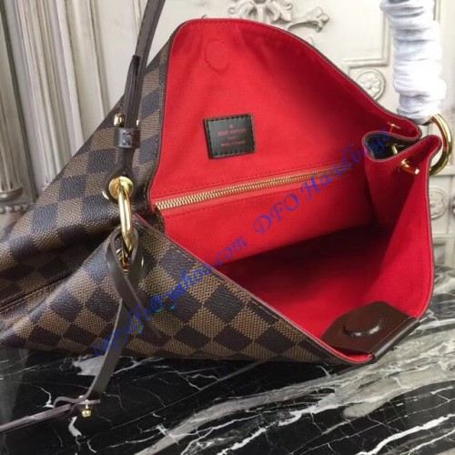 The Louis Vuitton Damier Ebene Graceful PM N44044 is made of coated canvas and it has a Louis Vuitton Paris signature. So far so good. An interesting fact is that the inside of the bag is even better. It comes coated with cotton in red color, so it is sexy and elegant. In addition, cotton lining makes the bag feel so much better and more pleasant to touch.
