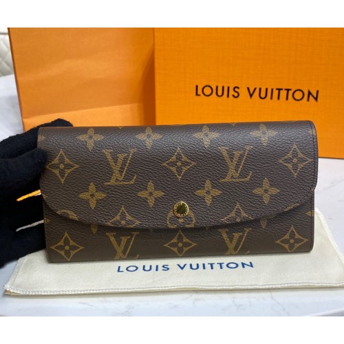 Proving that functionality and beautiful design can go together, the Emilie Wallet is elegance itself in supple Monogram canvas with a fresh lining color. Numerous pockets and an attractive shape make it irresistible.