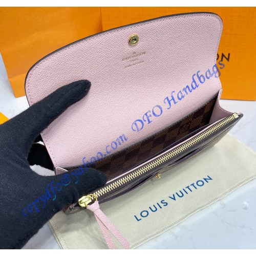 Proving that functionality and beautiful design can go together, the Emilie Wallet is elegance itself in supple Damier Ebene canvas with a fresh lining color. Numerous pockets and an attractive shape make it irresistible.