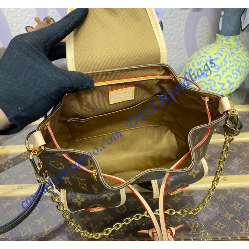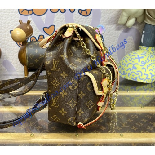 Made from Monogram canvas with leather trim, the super-cute, super-functional Excursion PM backpack has a design clearly influenced by the world of hiking. The main compartment closes with an adjustable sliding buckle and there are two pockets with buckles on the front. A gold-color chain, in addition to the top handle, enable different carries.