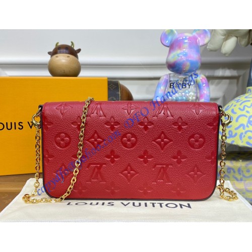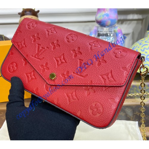 The Félicie Pochette is crafted from Monogram Empreinte leather, embossed with Louis Vuitton's signature Monogram pattern. Designed to adapt to modern lifestyles, this envelope-style pouch contains a spacious compartment with two removable pockets: one zipped, one with card slots. It can also be carried in different ways thanks to a removable chain.