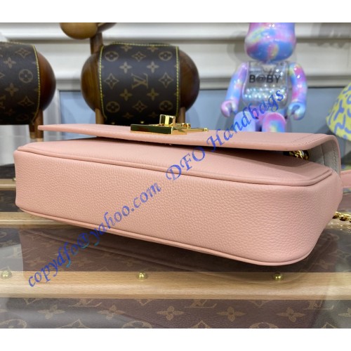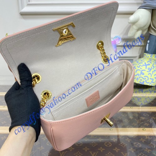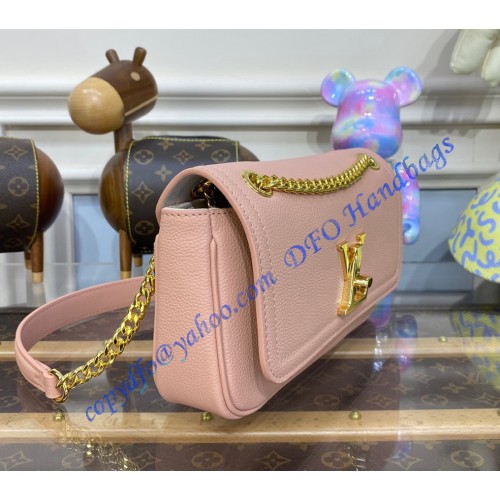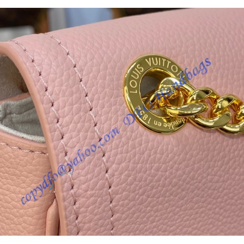 Made from grained calfskin leather, the LockMe Chain Bag East West, with its urban 90’s vibe, is the latest newcomer to the list of day-to-evening wardrobe essentials. Its compact proportions, sliding gold-color chain, and LV Twist lock bring sophistication to the bag. It can perfectly fit daily belongings such as a wallet or phone.