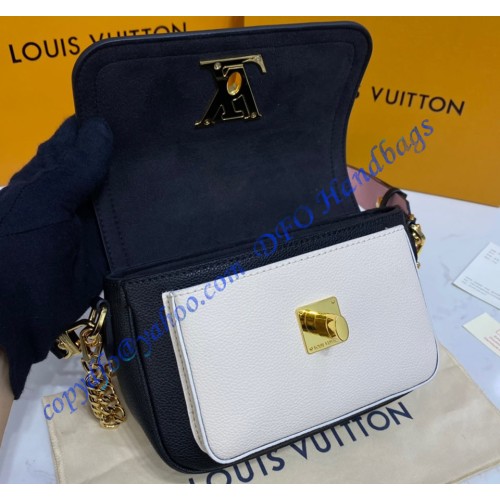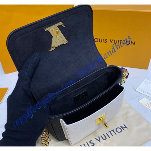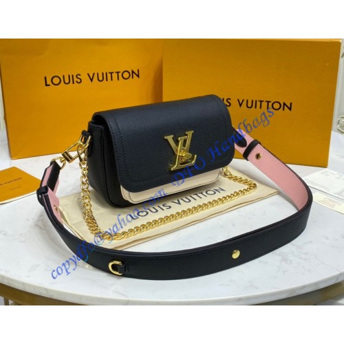 Fashioned from supple grained calf leather, the Lockme Tender cross-body bag comes with a wide removable and adjustable strap in addition to its traditional gold-color chain. Each side of this versatile strap has a different color and texture. A metallic D-ring on the strap means it can be personalized with a charm.